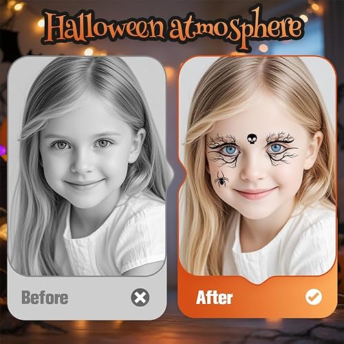 【Halloween Party Makeup Tattoos】Ideal for Halloween parties, cosplay events, Day of the Dead celebrations, themed birthday parties, and even club nights. These waterproof temporary tattoos add a festive touch to any spooky occasion. Halloween face temporary tattoos Halloween spider web face tattoos for boys, girls, women, kids, and adults.