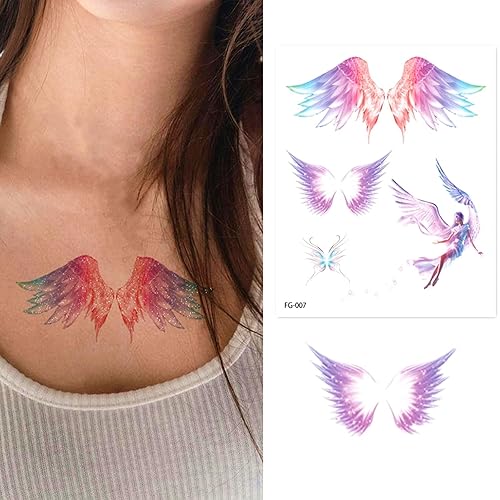 Glitter Temporary Tattoos: This set features 20 sheets of shimmering butterfly tattoos, offering over 100 unique designs. With a variety of butterfly,floral, fairy, bubble, and angel wing motifs