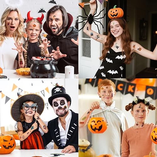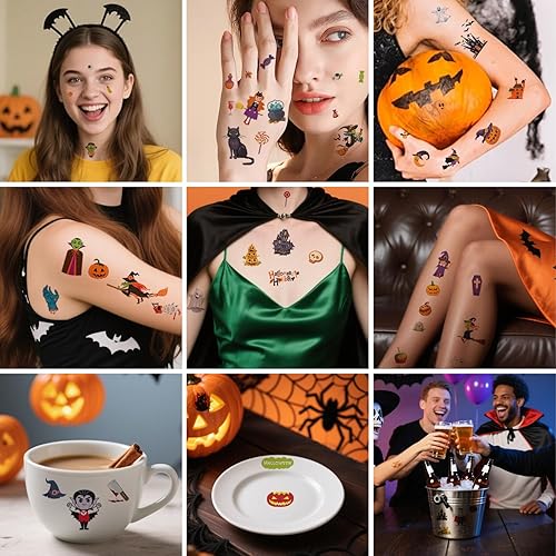 Unique and Spooky Halloween Designs: Our tattoo stickers incorporate classic Halloween-themed elements such as witches, bats, skeletons, webs,ghosts, skeletons, pumpkins, haunted houses, and more, ensuring that each design perfectly captures the essence of the Halloween and is the ideal accessory for your celebration