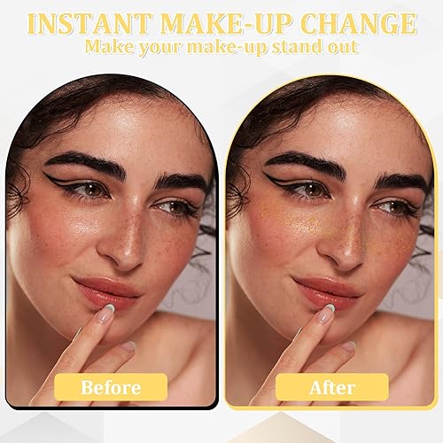 Long-lasting Shine: Our glitter face tattoos have good adhesion, can fit the skin perfectly, and are not easy to fall off, allowing you to be radiant from morning to night, maintain a delicate freckles makeup, and no need to touch up again.