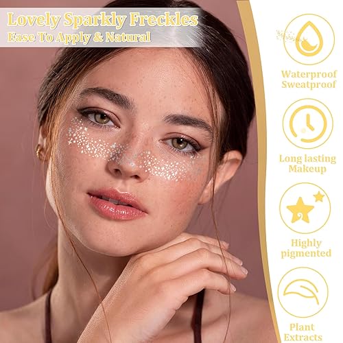 Long-lasting Shine: Our glitter face tattoos have good adhesion, can fit the skin perfectly, and are not easy to fall off, allowing you to be radiant from morning to night, maintain a delicate freckles makeup, and no need to touch up again.