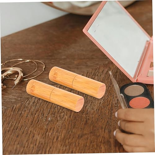 2pcs Bamboo Lipstick Tubes for Women Empty Lip Gloss Containers Rustic Lip Balm Storage Diameter