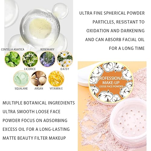 【Strong Oil Control】With high-quality and safe formula, the ultra loose face powder can adsorb excess oil, making the base makeup more refined and the outline more three-dimensional. Fast makeup setting, soft focus in one second without greasy.