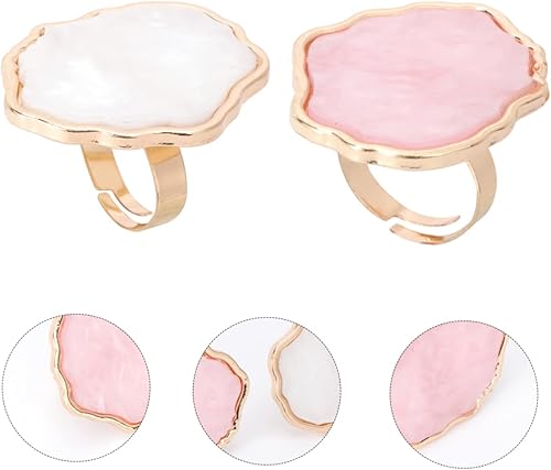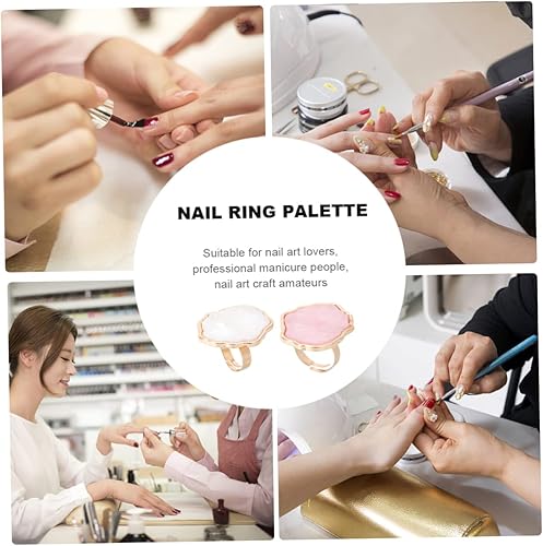 2pcs Marble Nail Art Mixing Plate White Pink Shell Design Ring Palette for Creative Nail Art Easy to Clean for Home and Salon Use