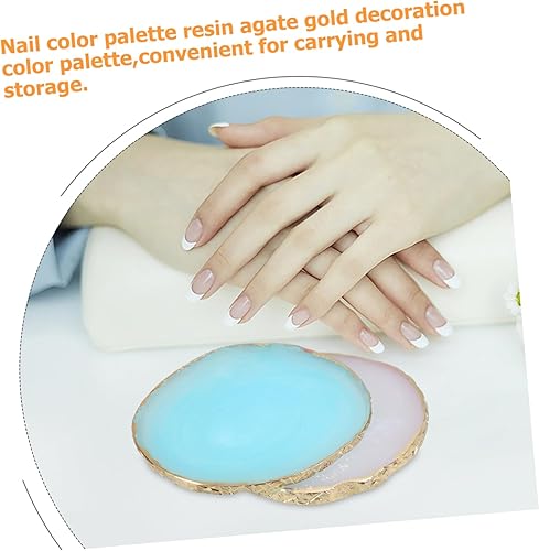 2pcs Resin Nail Art Mixing Palette Color Mixing Tray for Nail Painting and Makeup Round White Blue Polish Display Boards for Professionals