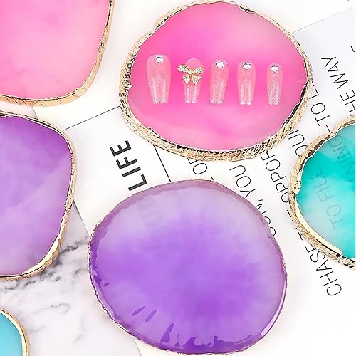 Exquisite design: These palettes are in agate stone style, and the edges are outlined in gold. It can be used to display the completed nail art works, and can also be used as a palette for makeup.