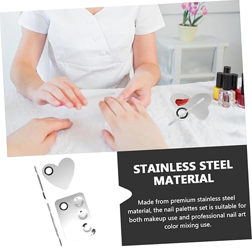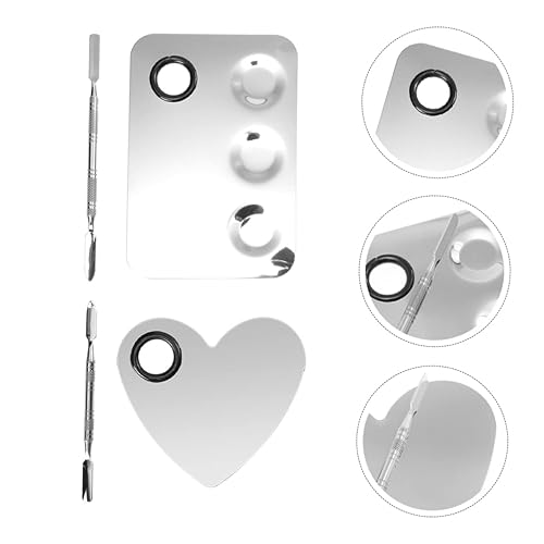 2sets Diy Makeup Nail Art Palette Stainless Steel Mixing Plates Spatulas(Silver)
