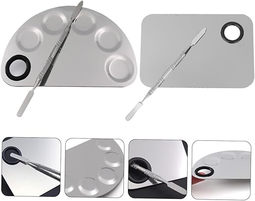 2sets Makeup Mixing Pallet Stainless Steel Palette for Foundation DIY Nail Makeup Beauty Salon Home Use Tool