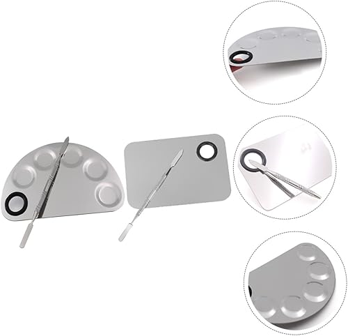 2sets Stainless Steel Makeup Mixing Palette Face Spatula Nail Mixing Palette for Blending Colors