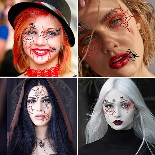 Unique Design: The diamond face art sticker adopts classic Halloween elements, and the combination of red spider webs and black spiders will make your outfit more mysterious and terrifying, making your Halloween outfit the focus of the party