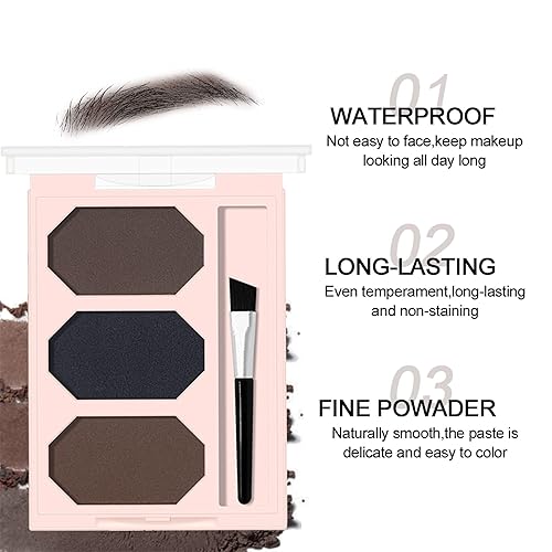 3 Color Eyebrow Palette: Each kit includes three blendable shades to match light brown, medium brown, dark brown and black brows, helping you create natural or bold looks.