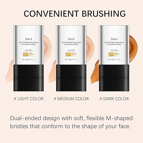 Comment on "3 in 1 Anti-Wrinkle Foundation Stick, Korean Beauty Balm Tinted Moisturizer, Full Coverage Face Foundation Makeup Stick with Brush,Hydrating Flawless Lightweight Natural Finish, Medium Color(Medium Color)"