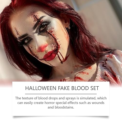 Halloween Makeup Set: The 3 Pack Halloween Fake Blood Makeup Set include 1.05 oz Coagulated Blood Gel + 2.02 oz Fake Coagulated Blood Spray + 2.02 oz Dripping Fresh Blood.Perfect for Halloween and other occasions