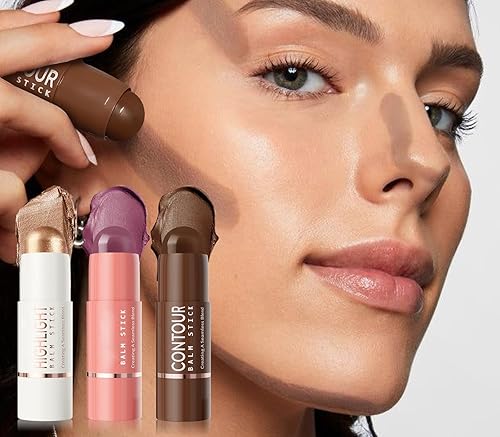 A 3-piece makeup set including contouring, highlighting, and a colored cream, quickly creating a natural makeup look