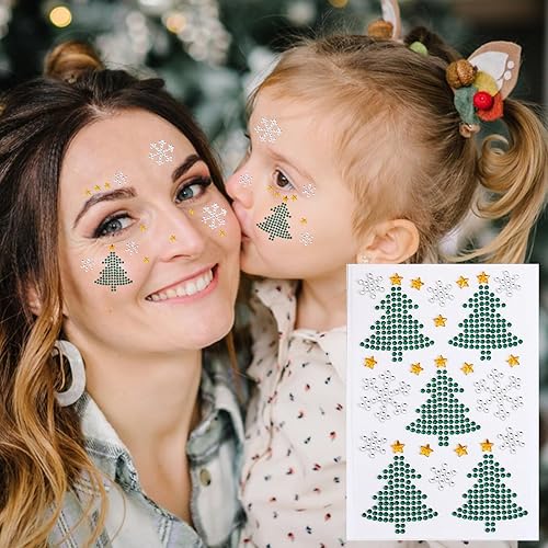 【Nice Material】These Christmas face jewels stickers are made of great material, they are skin-friendly, and the surface is smooth and lustrous, no scratches, non toxic and non odor, strong adhesion, not easy to fall of, waterproof and sweat proof, could be a long time used.