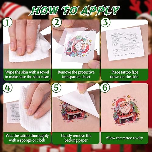 【Multi-purpose】Christmas theme temporary tattoo is great for children's Christmas party decorations or Christmas home decor! it is very suitable for decorating your face or arms on special holidays. Can be used on skin, metal, pottery, glass surface. Your kids could share them with their friends in the party.