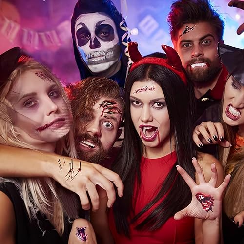 HALLOWEEN ZOMBIE TEMPORARY TATTOOS: Halloween Zombie Scar Temporary Tattoos Set of 30 Sheets in Size: 3.93x 2.35in,horror bloody wound stitch tattoos seem very true and natural, you can use it to DIY your own style tattoos.