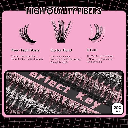 This cluster eyelash extension is designed with a thin cotton band and soft synthetic fibers developed with the latest technology that make them ultra-comfortable for extended wear. Featuring 200 clusters of featherlight lashes that go under your own lashes, so the bands aren't visible. Every wispy lash cluster has 30D and 40D eyelashes which make them very fluffy but natural. Special synthetic fibers and curling technology make them long-lasting curling and waterproof.
