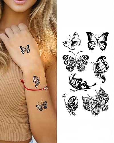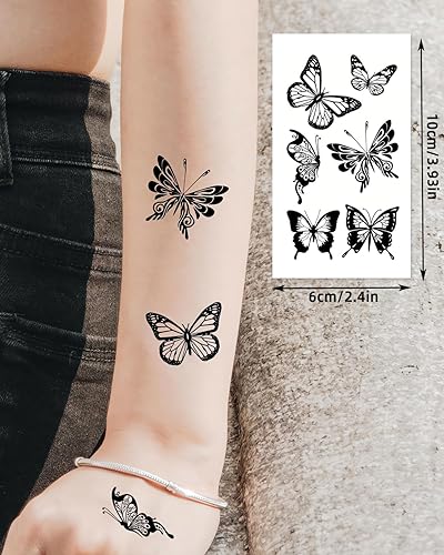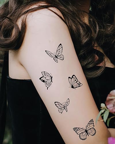 Butterfly Temporary Tattoos for Women:There are 30 black butterfly temporary tattoos in one pack, size 3.93*2.4 inches, you can use these tattoos for arm, shoulder, back, chest, leg, neck, and any part of your body. Butterfly fluttering on the body