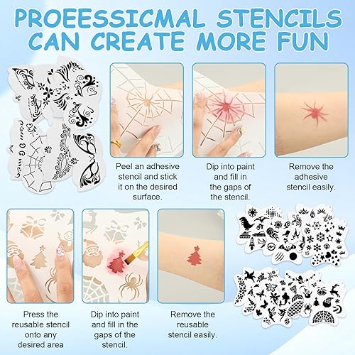 Easy to Use: Using our face painting brushes is very simple, even beginners can easily begin. Just stick the face paint stencils reusable firmly to the skin, and then use a sponge or liner pen to apply face painting. When using a sponge, just apply a proper amount of paint on the sponge and it needs to be almost completely dry to prevent the paint from seeping under the stencil.