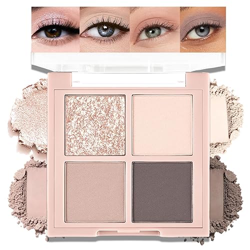 4 Colors Eyeshadow Palette Makeup, Matte Shimmer Glitter Eye Shadow Rose Nude High Pigmented Blendable Smooth Powder to Cream Eyeshadow for Daily Natural-Looking Eyes, Travel Friendly, 04(Set 2 Cement Color)