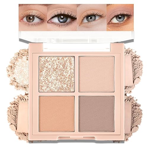 4-In-1 Versatile Eyeshadow Palette: Achieve stunning, natural looks with this 4 colors matte & glitter eyeshadow palette. With neutral tones & shimmer, glitter nude eyeshadow palette is ideal for everyday wear, special occasions or travel