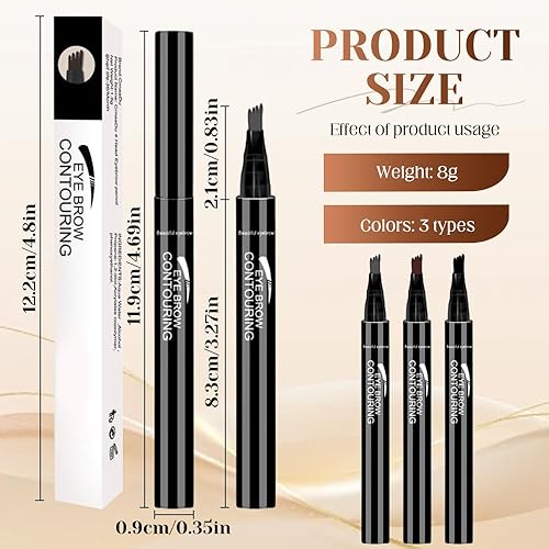 4 Head Split Eyebrow Pencil, Micro Fork Tip Creates Exquisite Looking, Effortlessly and Stays on All Day, Fine Stroke Eyebrow Pen for Women (Brown)(Black)