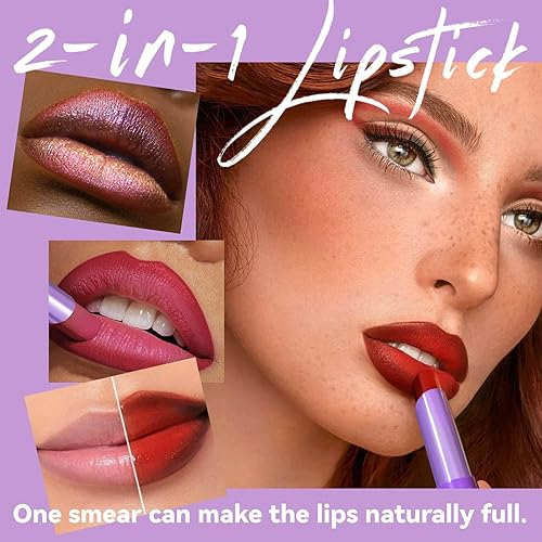 【Long-Lasting, Smudge-Proof Wear for All-Day】 Designed to stay put through meals, party, and busy schedules, these lipsticks offer exceptional wear without constant touch-ups. The matte side provides a transfer-resistant, budge-proof finish, while the glossy side adds dimension and hydration for a plumped, luscious effect. No dryness or cracking—just comfortable, weightless color that lasts.