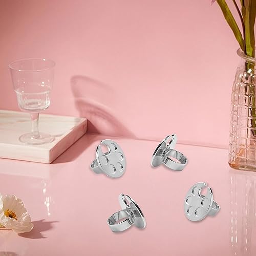 4 Pcs Mini Nail Art Palette Finger Ring Nail Polish Holder Glue Container for Painting Nails Wearable Metal Manicure Tool Makeup Palettes