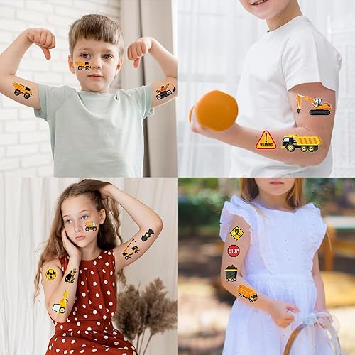 【Ideal for Car-Themed Party Prep】Each tattoo comes pre-cut on 8.27 x 5.91 inch sheets, making them easy to slip into goodie bags or hand out as instant entertainment. Whether applied to cheeks, arms, hands, or ankles, these stickers add a playful touch to costumes, party games, or everyday play—perfect for turning any gathering into a construction site or race day adventure.