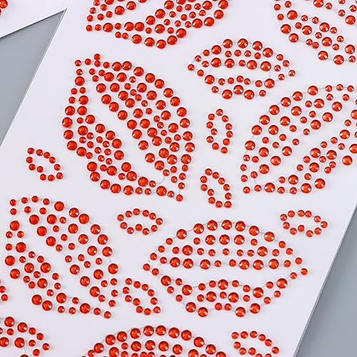 4 Sheets Red Heart Shaped Rhinestone Stickers Self Adhesive Lip Face Gems Festival Crystal Hair and Body Stickers Sparkly Makeup Face Jewels Craft Stick on Gems Decorative Diamond Sticker