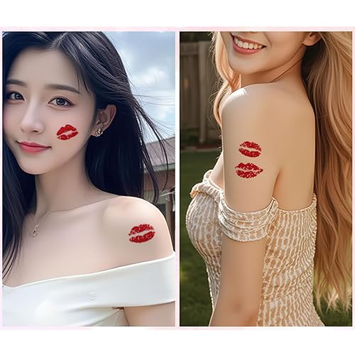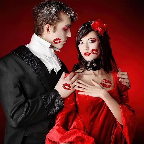 Comment on "45 Pcs Red Kiss Temporary Tattoo Stickers, Red Lip Print Tattoo Kiss Face Tattoos, Waterproof Lip Mark Temporary Tattoo for Valentine's Day Halloween Costume Accessories Birthday Party Decoration"