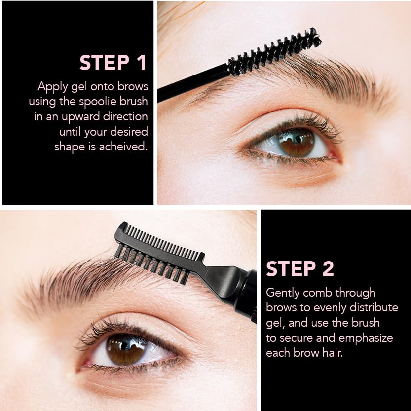 Dual-Sided Comb & Brush – The comb side evenly distributes gel and separates each brow hair, while the brush secures and defines for a fuller, more polished finish.