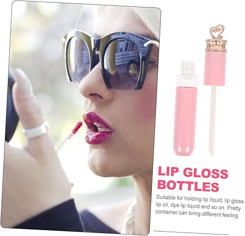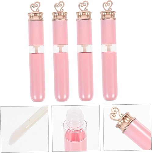 4pcs Heart Shaped Refillable Lip Gloss Tubes Pink Empty Makeup Containers for Lip Oil Diy and Gift Giving