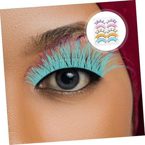 5 Pairs Colored Curly False Eyelashes Lightweight Natural Look Individual Extensions for Women Makeup Accessories Gift for Halloween Christmas Year