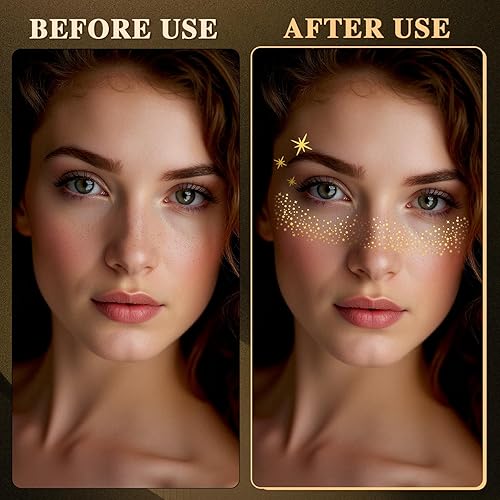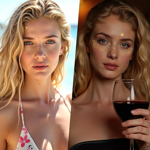 High Quality: Crafted from eco-friendly materials, our sparkling glitter freckles are waterproof, sweatproof, and boast high adhesion, ensuring you need not worry about peeling issues. Whether you're engaging in sports, swimming, or attending long parties or weddings, these glitter tattoos will maintain their flawless state.