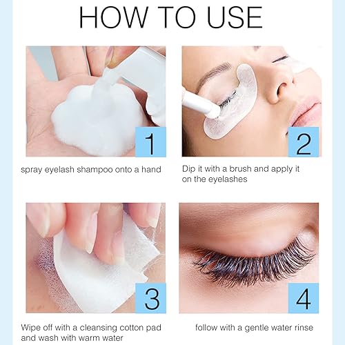 Easy to Use: Our kit includes a 50ml foaming lash shampoo, a cleansing brush and a eyelash brush. Simply apply the foam to your lashes, massage gently, and rinse off with water.