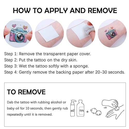 【Easy to Use and Remove】: Just tear off the transparent film, put it on dry skin, moisten it with water, and you can easily and painlessly get a unique and realistic tattoo in 30 seconds. Removal: It can be easily removed with ordinary baby oil or cleansing oil. Rubbing alcohol can also remove tattoos well without leaving any residue.