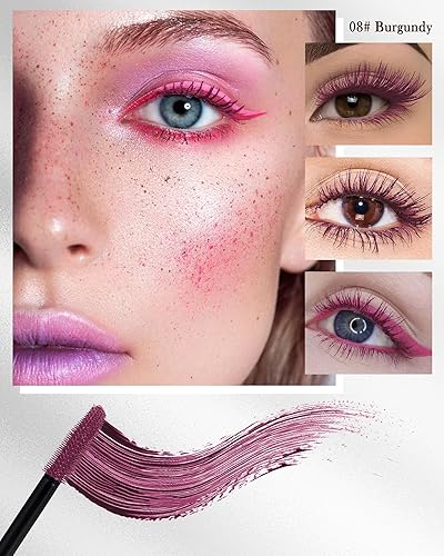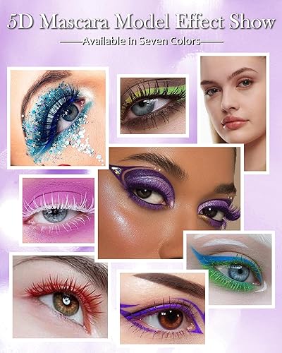 8 Colors 5D Colored Mascara - Our colorful 5D tubing mascara comes with an easy-to-use, large-head, olive-shaped applicator, and available in 8 popular colors, black brown white blue purple green red burgundy etc. Vivid colors meet your needs and make your makeup more attractive & charming. Suitable for all eye colors and skin tones.