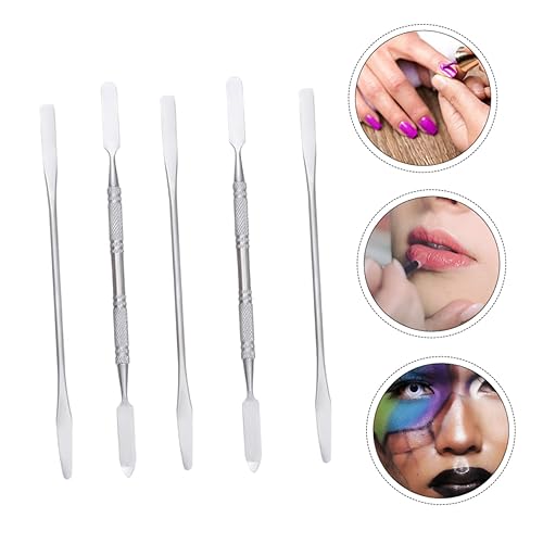 5pcs Chrome Nail Art Palette Stick Makeup Tools Stainless Steel Manicure Stirring Rod