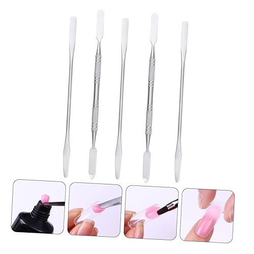 5pcs Stainless Steel Mixing Rods Dual-ended Makeup Spatulas for Nail Art Foundation Blush Eye Shadow Mixing Stirring Tools for Custom Blending
