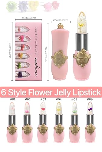 · 6-Pack (Single Tube) Crystal Jelly Lipstick Set - Each pack includes 6 individual tubes of beauty-enhancing bright flower-infused jelly lipsticks. Perfect for daily use or as gifts.