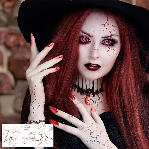 Comment on "6 Sheets Blood Vessel Face Temporary Tattoos Stickers Halloween Vampire Zombie Body Face Makeup for Halloween Cosplay Rave Party DIY Art Decoration (Red Black Blue Purple)(Red Black Blue Purple)"