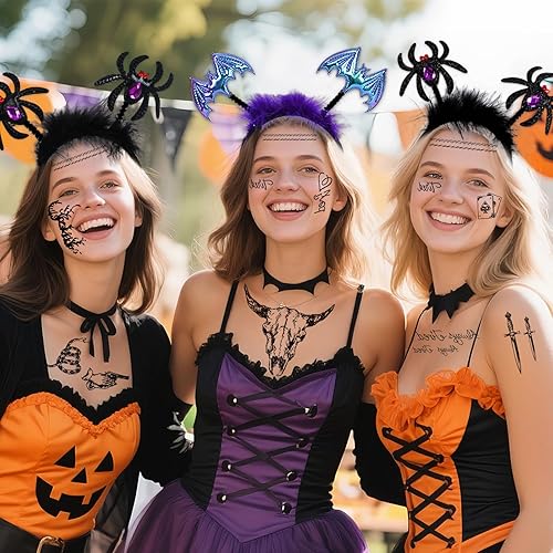 SAFE TATTOO STICKERS: Halloween temporary tattoos are printed with high-quality tattoo ink and paper meeting rigid safety and NON-TOXIC materials requirements. Do not apply to sensitive skin, near eyes, or if you are allergic to adhesives.
