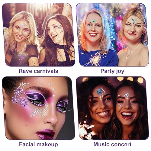 【Reusable Body Gems】- Made from high-quality acrylic, these body jewels are safe, anti-sensitive, and reusable. After initial use, apply eyelash glue to reuse these face gem stickers. Great for face diamonds stick on designs or festival face gems creativity.