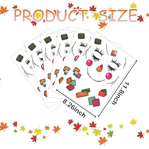 6 Sheets Scarecrow Temporary Face Tattoos Scarecrow Makeup Face Decals Fall Halloween Spooky Makeup Stickers for Women Cosplay Party Supplies Decoration(face6)(makeup6)