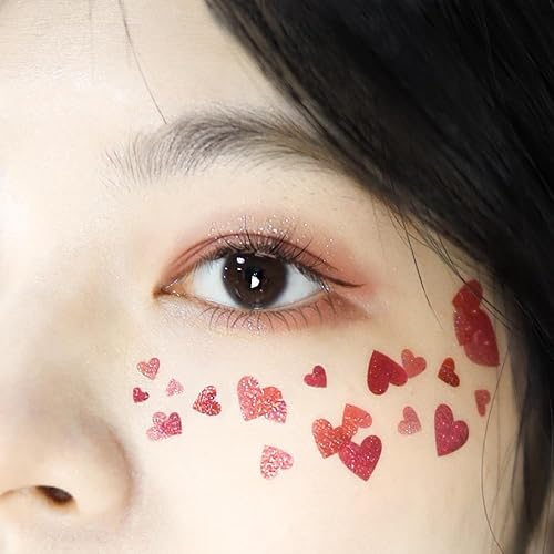 6 Sheets Temporary Tattoo Cute Flash Glitter Face Stickers Little Daisy Flower Clover Colour Scale Love Heart Maple Leaf for Women Girls