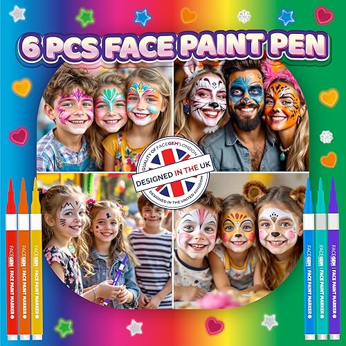 6 Water-Based Face Paint Pens (Water Based) – Easy to use, mess-free for colorful and creative expression.