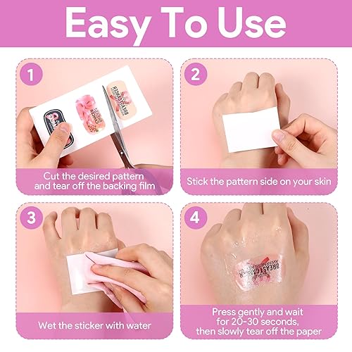 Easy to Apply and Remove: Remove the plastic wrapping from the breast cancer awareness face tattoo, spray it with water, apply the wet tattoo sticker to your skin. Press firmly for about 20-35 seconds before removing it. Remove with rubbing alcohol, olive oil, or baby oil