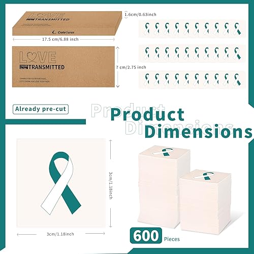 Abundant for All Needs: This package included 600 pieces teal and white cancer ribbon tattoos, make it perfect for bulk white and teal awareness products, survivor gifts, and even fundraising items with family and neighbors.